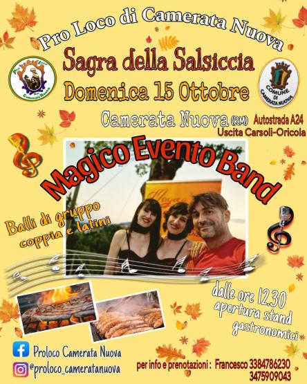 A Camerata Nuova, il 19 ottobre torna la tradizionale Sagra della Salsiccia. Appuntamento immancabile dell’autunno laziale, la manifestazione, organizzata dalla Pro Loco, celebra da oltre 25 anni uno dei prodotti simbolo della tradizione locale, con un pranzo di piazza dove la salsiccia, rigorosamente artigianale, sarà proposta in tante gustose varianti. Il menù ufficiale sarà reso noto a breve, ma l’ingrediente principale promette di soddisfare ogni tipo di appetito.